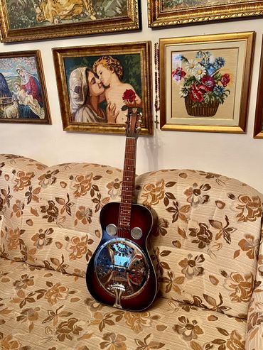 This 1981 Stelling Gospel model is very rare , almost impossible to find for sale , unique work of art and beautiful sounding instrument! All original except for the head and four tuners which are Gotohs. No issues. Excellent feel. This model came with a block rim! Original case in very good condition as well. Finish waxed to a nice shine and metal is still fairly shiny too. Serial number #1901
